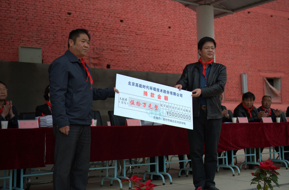高能环境副总经理齐志奇在捐赠仪式上这样表示: 希望小学,对于我们来说,付出的可能只是一小部分,可改变的,也许是这些孩子的整个人生,希望用我们的实际行动,带给孩子们温暖与关爱,同时激发广大社会人士助人为乐的美好情怀,弘扬社会正能量。热心公益,致力环保,一直是我们不变的情怀,高能环境与西宁市湟水投资管理有限公司合资成立环保公司,投资建设了西宁市第一个PPP项目——污泥综合处置项目,并正致力于为西宁市创建文明城市、更好地保护西宁市乃至青海省生态环境做出更大贡献!