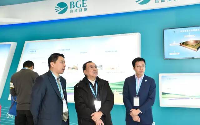 ▲环保部原副部长、中国环保产业协会原会长王心芳视察高能环境展区