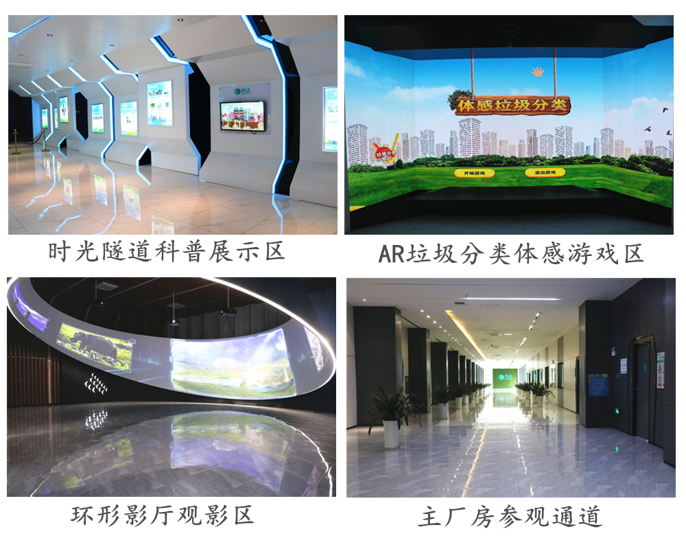 基地科普展示内容分为两部分:一是垃圾焚烧发电工艺介绍;二是垃圾分类知识宣教。岳阳市城市生活垃圾焚烧电厂设计和建设过程中即已充分规划考虑科普基地的宣教功能,整体规划了大型、专用的科普宣教用途的多华体会网页版展厅。基地配备了大尺寸沉浸式VR体感互动屏、360度环形影院、大型报告展厅、垃圾焚烧发电现场观摩参观通道及超过5000平米户外科普活动广场等,具备单次接待百人规模的科普宣教活动。